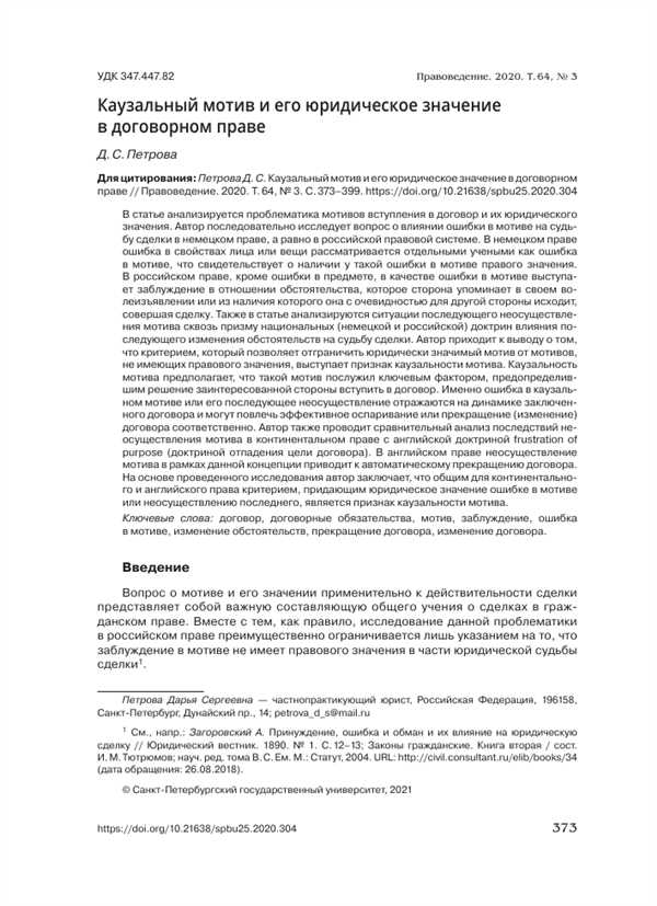 Правовая сущность специальной договорной конструкции сквозь призму экономической цели договора как средства регулирования взаимоотношений между сторонами