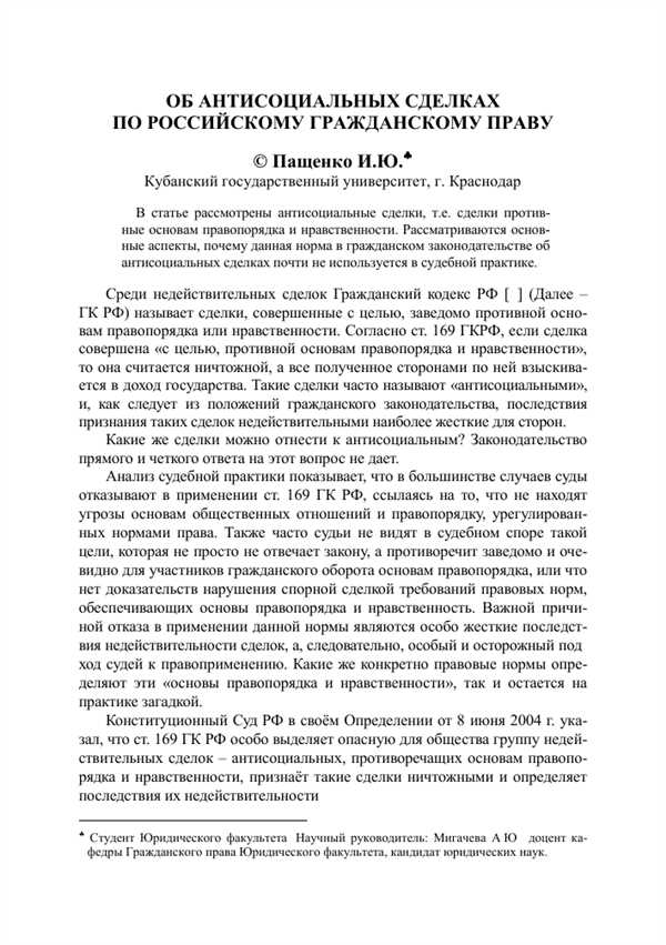 Недействительность сделки, совершенной с целью противных основам правопорядка — какова судьба статьи 169 ГК РФ?