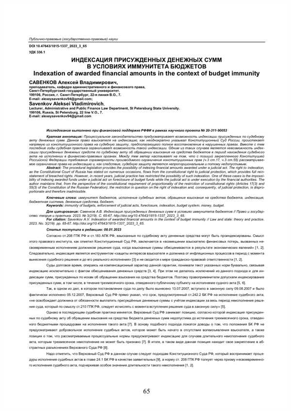 Индексация присужденных денежных сумм является одним из важных аспектов гражданского процессуального права Российской Федерации. В соответствии со статьей 183 АПК РФ и статьей 208 ГПК РФ, присужденные денежные суммы должны быть проиндексированы для компенсации инфляционных потерь.