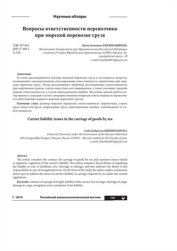 В этой ситуации ограничение ответственности перевозчика играет важную роль. Это правовое понятие, которое определяет объем ответственности перевозчика перед клиентом или страховщиком в случае утраты или повреждения груза. Ограничение ответственности может быть установлено договором между сторонами или законодательными актами.
