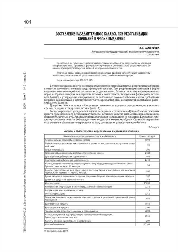 Реорганизация предприятия – это сложный процесс, требующий тщательного планирования и анализа. Одним из важных шагов при реорганизации является составление разделительного баланса. Разделительный баланс – это финансовый отчет, в котором отражаются активы, пассивы и собственный капитал предприятия в момент разделения.
