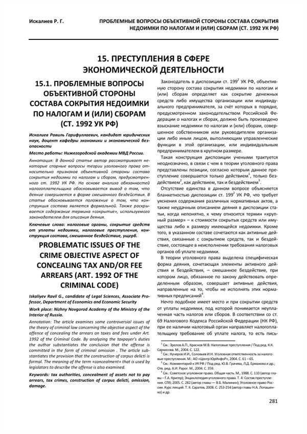 В статье 1992 Уголовного кодекса Российской Федерации предусмотрены меры уголовной ответственности за налоговые преступления, включая недоимку налогов и сборов. Однако вопрос о важности суммы недоимки в данной статье остается актуальным и привлекает внимание юристов, судей и правоохранительных органов.