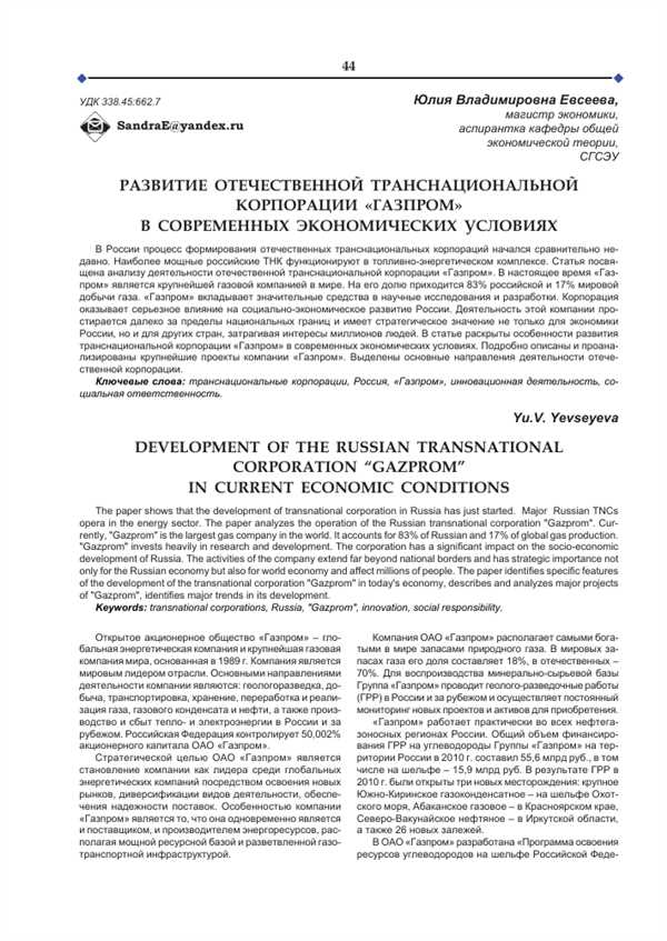 Газпром, одна из крупнейших транснациональных корпораций в мире, играет значительную роль в глобальной экономике. Благодаря своему статусу мирового лидера в сфере производства и экспорта природного газа, Газпром влияет на развитие энергетического сектора и определяет последствия на международных рынках.