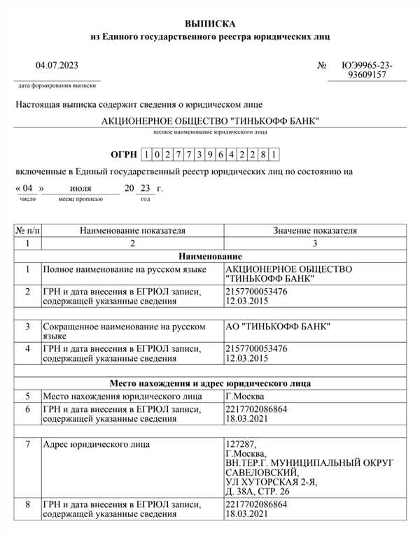 Выписка из ЕГРЮЛ может потребоваться при открытии банковского счета, получении кредита или заполнении финансовой отчетности. Она позволяет банку или финансовым организациям убедиться в легитимности и финансовой стабильности юридического лица.